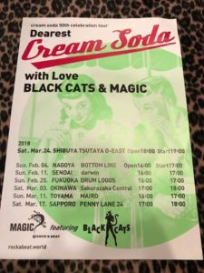 BLACK CATS&MAGIC クリームソーダ50周年記念ツアーファイナル 3月24日 渋谷O-EASTでの公演チケットを原宿Jack’sでも店頭発売いたします。